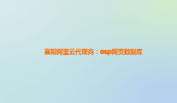 襄陽阿里云代理商:asp網頁數據庫
