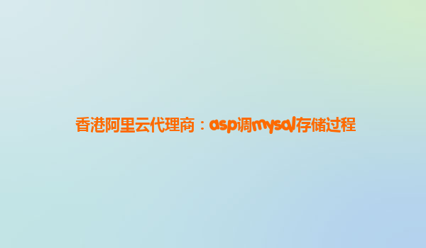香港阿里云代理商:使用ASP調(diào)用MySQL存儲過程的優(yōu)勢及應(yīng)用