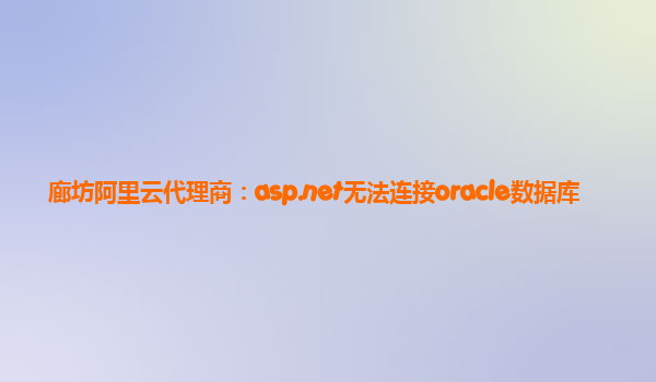 廊坊阿里云代理商:解決ASP.NET無法連接Oracle數(shù)據(jù)庫問題,助力企業(yè)上云