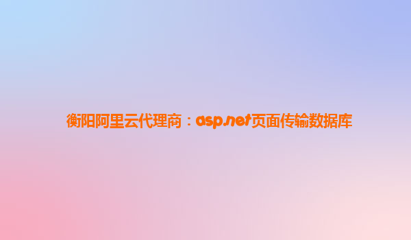 衡陽阿里云代理商:ASP.NET頁面?zhèn)鬏敂?shù)據(jù)庫