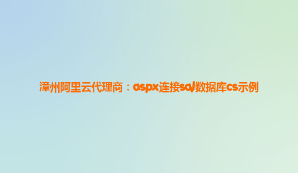 阿里云代理商:連接SQL數(shù)據(jù)庫示例