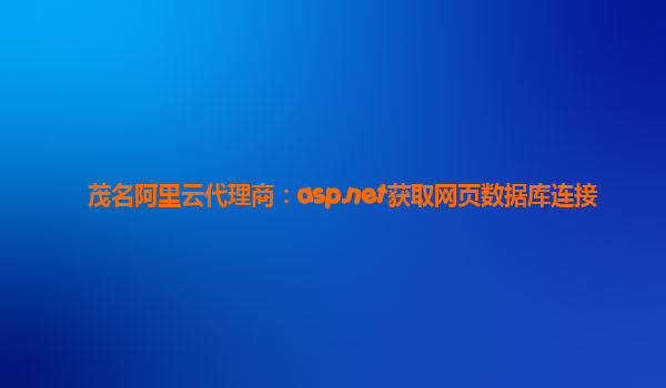 茂名阿里云代理商:使用ASP.NET獲取網(wǎng)頁數(shù)據(jù)庫連接的最佳實(shí)踐