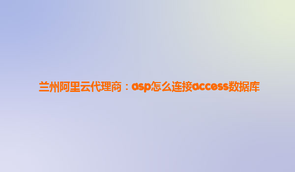 蘭州阿里云代理商:ASP如何連接Access數(shù)據(jù)庫