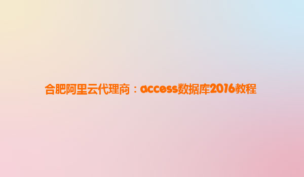 合肥阿里云代理商:access數(shù)據(jù)庫(kù)2016教程