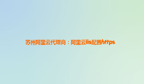 蘇州阿里云代理商:阿里云 IIS 配置 HTTPS