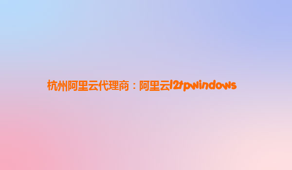 杭州阿里云代理商:阿里云L2TP Windows