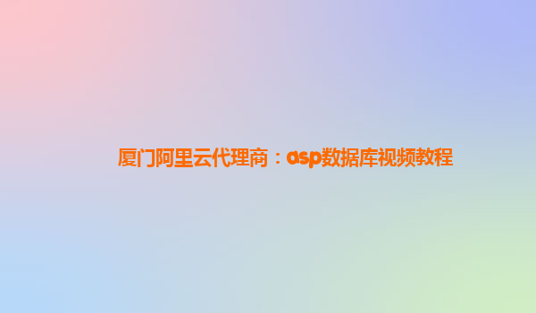廈門(mén)阿里云代理商:ASP數(shù)據(jù)庫(kù)視頻教程