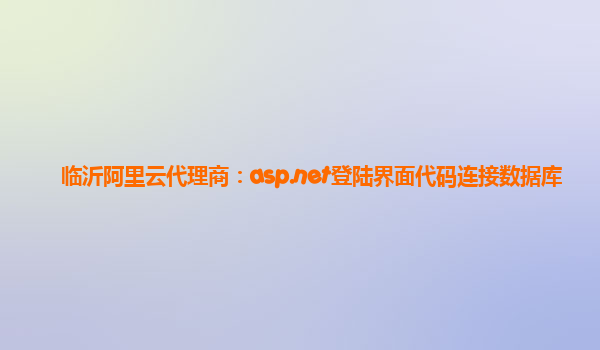 基于臨沂阿里云代理商的ASP.NET登錄界面數(shù)據(jù)庫(kù)連接代碼解析