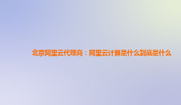北京阿里云代理商:阿里云計算是什么到底是什么