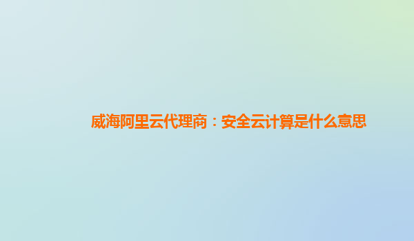 威海阿里云代理商:安全云計算是什么意思?