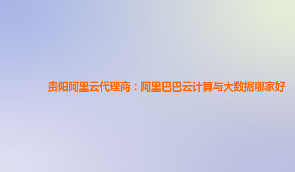 貴陽(yáng)阿里云代理商:阿里巴巴云計(jì)算與大數(shù)據(jù)哪家好?