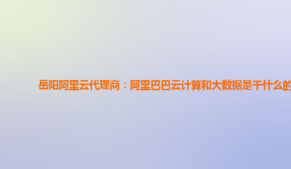 岳陽(yáng)阿里云代理商:阿里巴巴云計(jì)算和大數(shù)據(jù)是干什么的