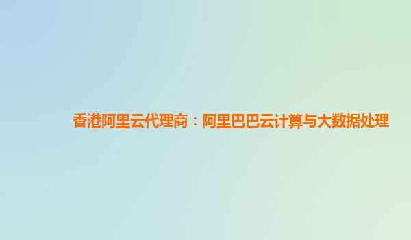 香港阿里云代理商:阿里巴巴云計算與大數(shù)據處理