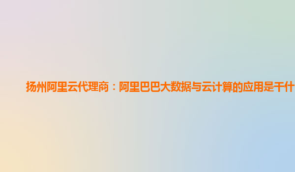揚(yáng)州阿里云代理商:阿里巴巴大數(shù)據(jù)與云計(jì)算的應(yīng)用是干什么的
