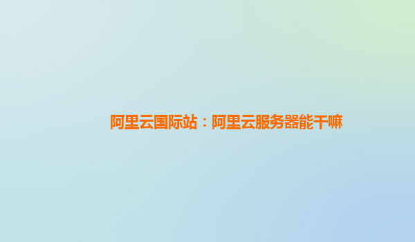 阿里云國際站:阿里云服務(wù)器能干嘛?