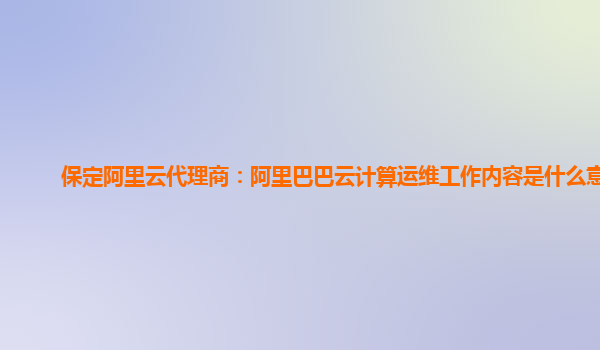保定阿里云代理商:阿里巴巴云計(jì)算運(yùn)維工作內(nèi)容解析