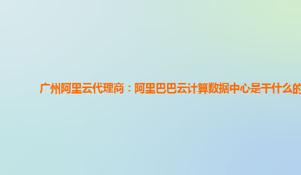 廣州阿里云代理商:阿里巴巴云計(jì)算數(shù)據(jù)中心是干什么的