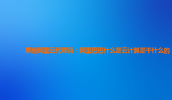 惠州阿里云代理商:阿里巴巴什么是云計(jì)算,云計(jì)算是干什么的?