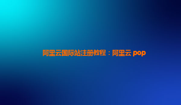 阿里云國(guó)際站注冊(cè)教程:阿里云 POP