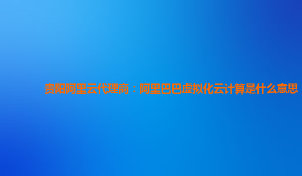貴陽阿里云代理商:阿里巴巴虛擬化云計算是什么意思