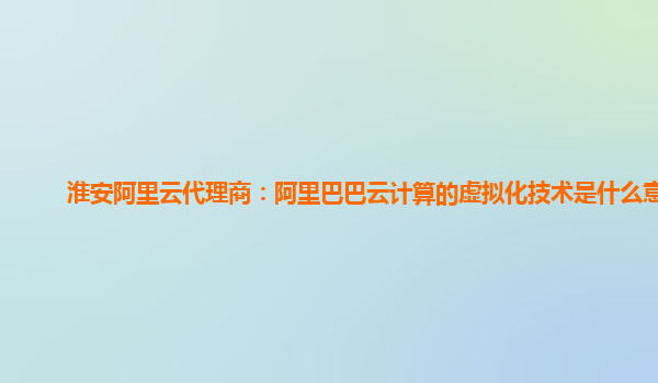 淮安阿里云代理商:阿里巴巴云計算的虛擬化技術