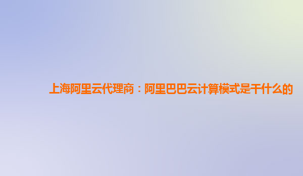 上海阿里云代理商:阿里巴巴云計(jì)算模式是干什么的