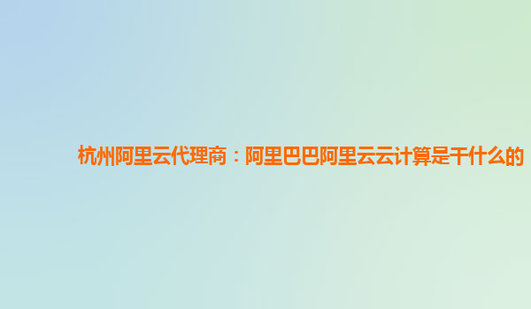 杭州阿里云代理商:阿里巴巴阿里云云計算是干什么的