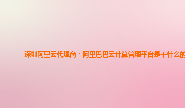 深圳阿里云代理商:阿里巴巴云計(jì)算管理平臺(tái)是干什么的
