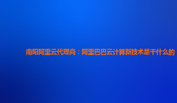 南陽阿里云代理商:阿里巴巴云計算新技術(shù)是干什么的