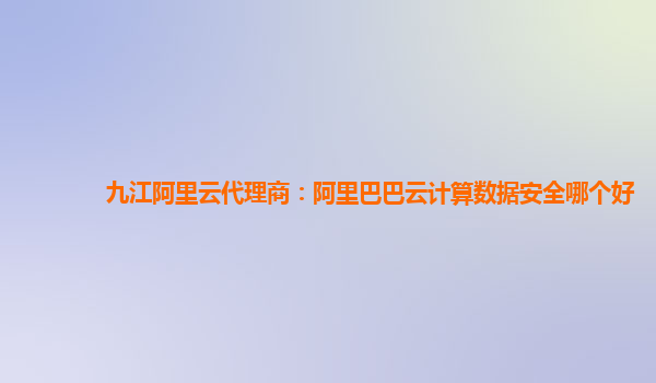 九江阿里云代理商:阿里巴巴云計算數(shù)據(jù)安全哪個好