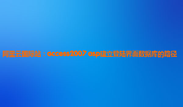 在當今數(shù)字化時代,構建一個安全且高效的登陸界面系統(tǒng)是任何一個網(wǎng)站或應用程序的基礎。而在阿里云國際站的幫助下,通過結合Access2007數(shù)據(jù)庫與ASP技術,可以快速搭建一個穩(wěn)定且高效的登陸界面。本文將詳細解析如何利用這些技術,在阿里云平臺上建立一個完整的登陸系統(tǒng),并結合阿里云的優(yōu)勢來優(yōu)化整體流程。