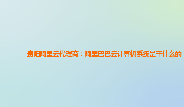 貴陽阿里云代理商:阿里巴巴云計算機系統(tǒng)是干什么的