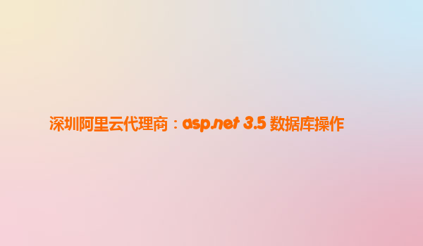 深圳阿里云代理商助力ASP.NET 3.5數(shù)據(jù)庫操作
