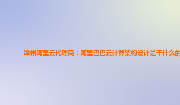 漳州阿里云代理商:阿里巴巴云計算架構(gòu)設(shè)計的作用與優(yōu)勢