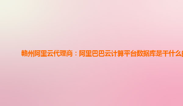 贛州阿里云代理商:阿里巴巴云計算平臺數(shù)據(jù)庫是干什么的
