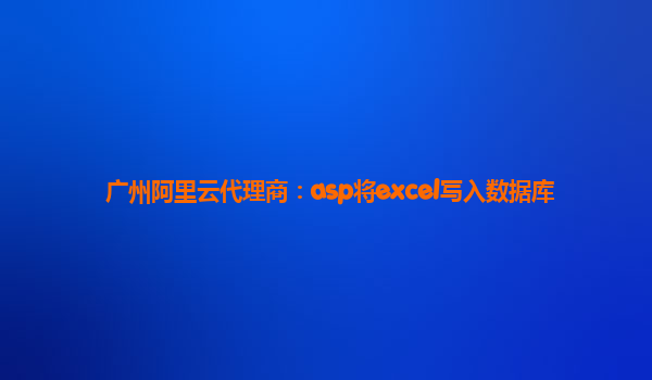 廣州阿里云代理商:ASP將Excel寫入數(shù)據(jù)庫