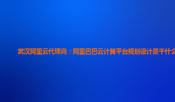 武漢阿里云代理商:阿里巴巴云計(jì)算平臺規(guī)劃設(shè)計(jì)是干什么的