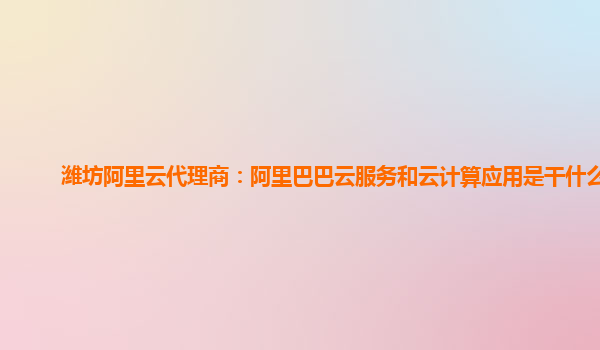 濰坊阿里云代理商:阿里巴巴云服務(wù)和云計(jì)算應(yīng)用是干什么的