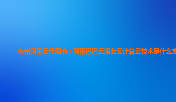 泰州阿里云代理商:阿里巴巴云服務云計算云技術(shù)是什么意思