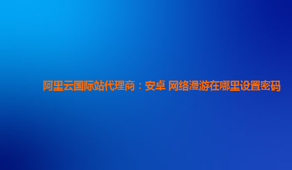 阿里云國際站代理商:安卓 網(wǎng)絡(luò)漫游密碼設(shè)置指南