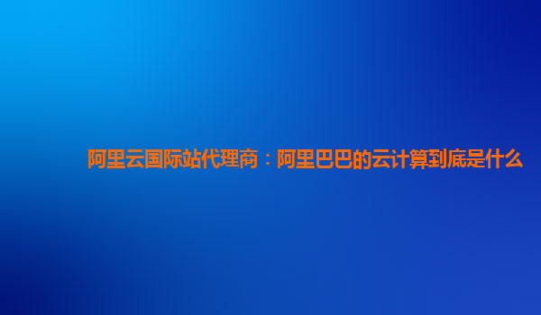 阿里云國際站代理商:阿里巴巴的云計算到底是什么?