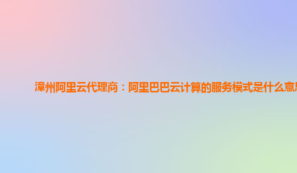 漳州阿里云代理商:阿里巴巴云計算的服務(wù)模式是什么意思
