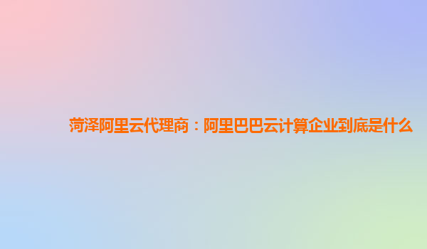 菏澤阿里云代理商:阿里巴巴云計算企業(yè)到底是什么