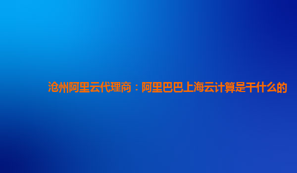 滄州阿里云代理商:阿里巴巴上海云計(jì)算是干什么的