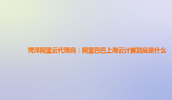 菏澤阿里云代理商:阿里巴巴上海云計算到底是什么