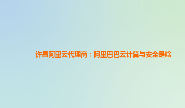 許昌阿里云代理商:阿里巴巴云計算與安全是啥?