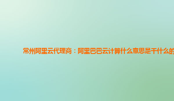 常州阿里云代理商:阿里巴巴云計算什么意思是干什么的