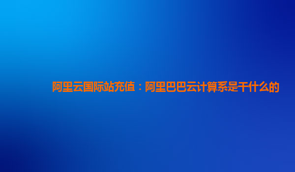 阿里云國際站充值:阿里巴巴云計算系是干什么的