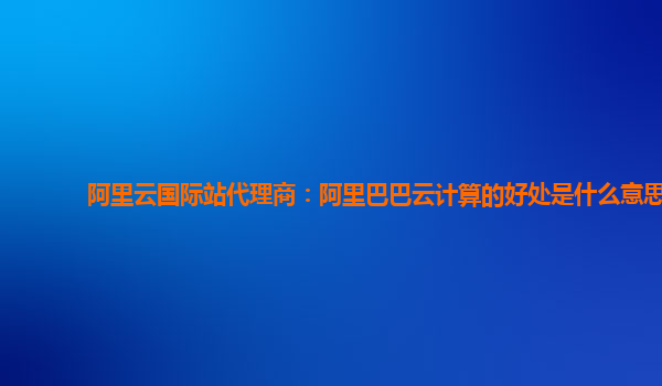 阿里云國際站代理商:阿里巴巴云計算的好處是什么意思
