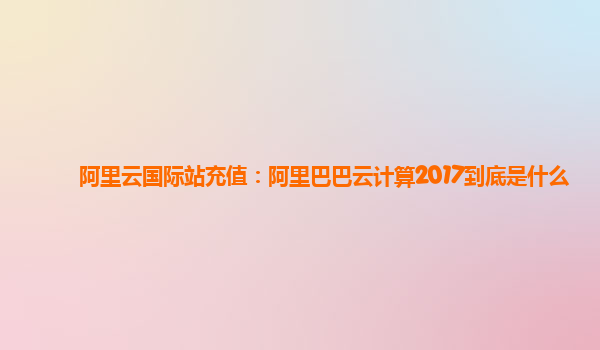 阿里云國際站充值:阿里巴巴云計算2017到底是什么